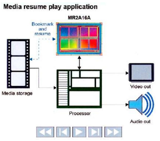 MRAM還適用于具有簡歷播放功能的娛樂應(yīng)用程序。掉電期間,指示播放媒體時間戳的書簽會快速存儲在非易失性MRAM中。然后幾乎立即進(jìn)行后續(xù)播放并繼續(xù)播放(下圖1)。
