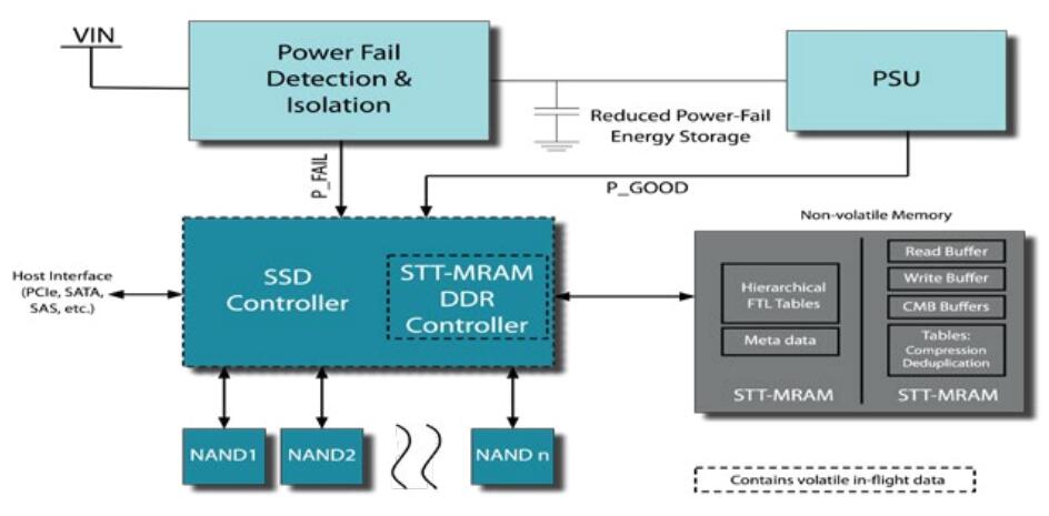 圖1.STT-MRAM取代了高級SSD架構中的DDR