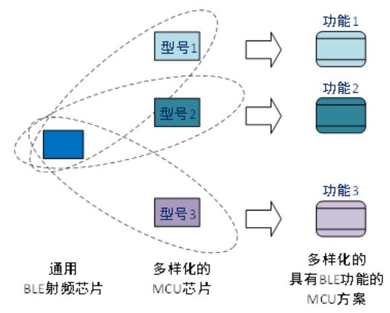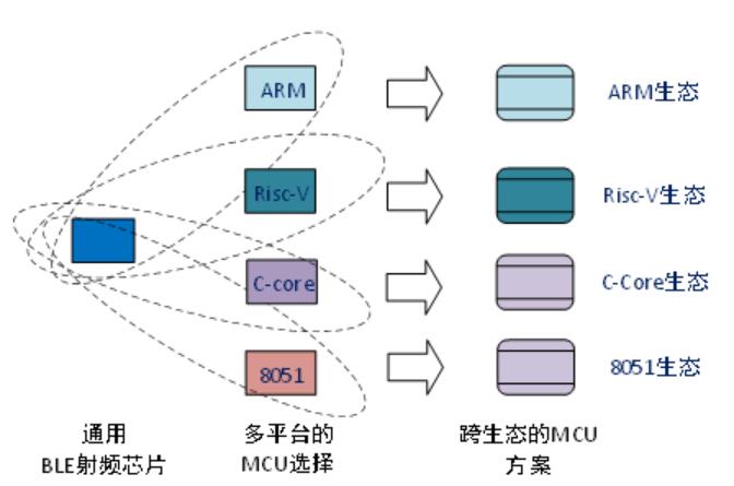 這樣,通過將通用ble射頻芯片和多樣化的微控制器芯片相結合,制造商可以快速組合多樣化和靈活的BLE單芯片或模塊化解決方案,以滿足不同的生態需求和市場需求。